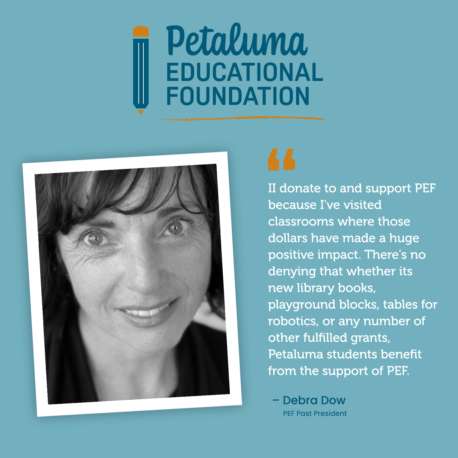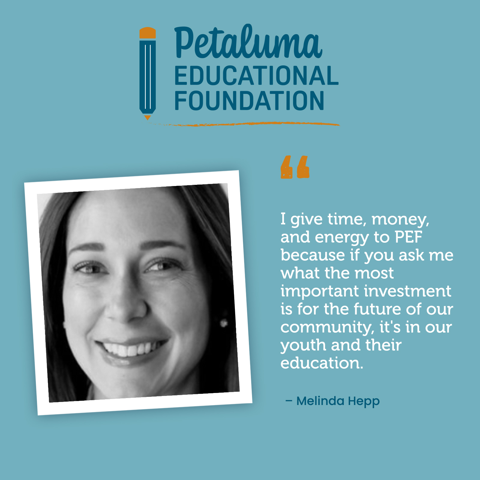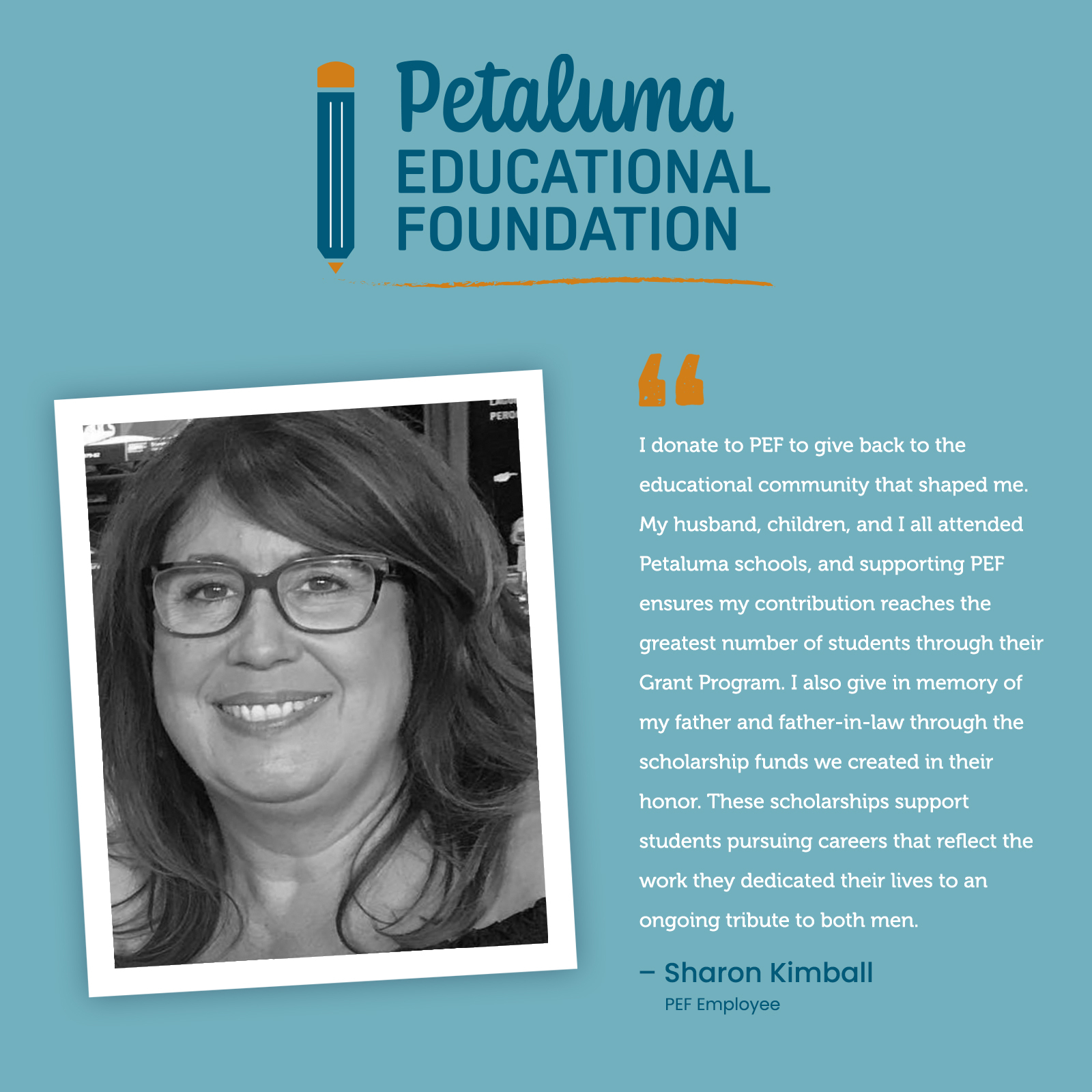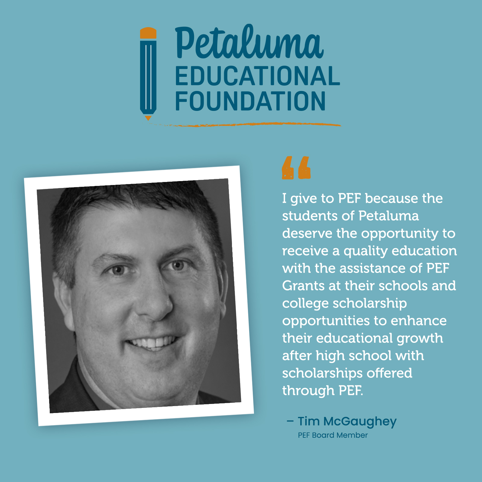 Each of them gives their time, heart, and support to ensure that over all Petaluma’s students and schools have the resources and opportunities to thrive. This November, we’ll be sharing personal quotes and stories that show why we choose to give back and we invite you to join us. Your generosity continues the legacy of learning and community that defines the Petaluma Educational Foundation.