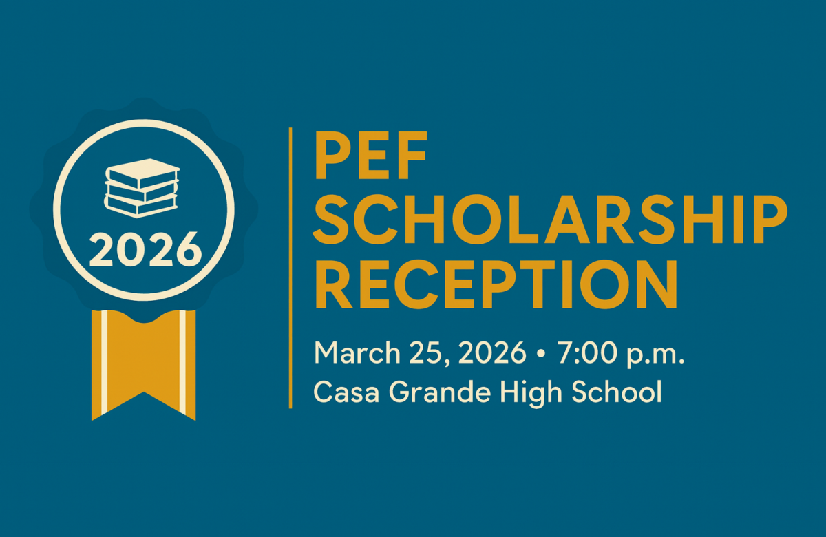 The 2026 PEF Scholarship Awards Reception will take place on Wednesday, March 25, starting promptly at 7:00 p.m. We will host the event at the Casa Grande High School Gym this year.