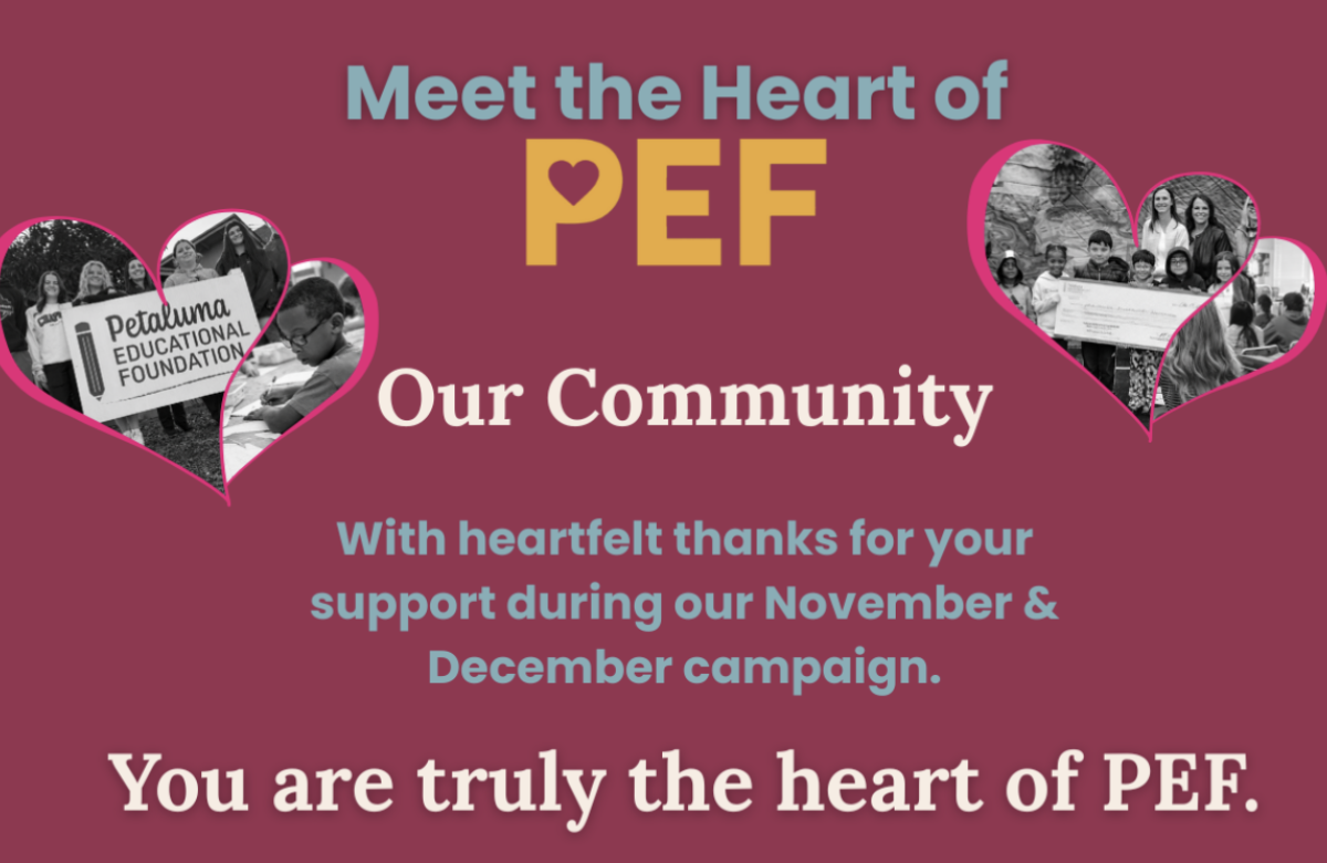 This November and December marked a meaningful milestone for the Petaluma Educational Foundation. We launched our Holiday Season Board and Staff Match Campaign, inviting our community to join us in supporting local education through a $30,000 matching challenge.
